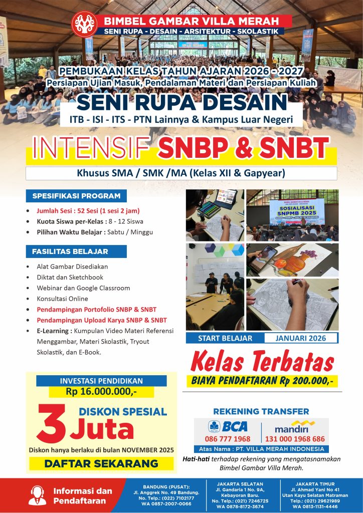Program kelas Khusus XII SMA untuk mempersiapkan diri menghadapi SNBP dan SNBT Fakultas Seni Rupa Desain ITB atau Perguruan Tinggi lainnya.