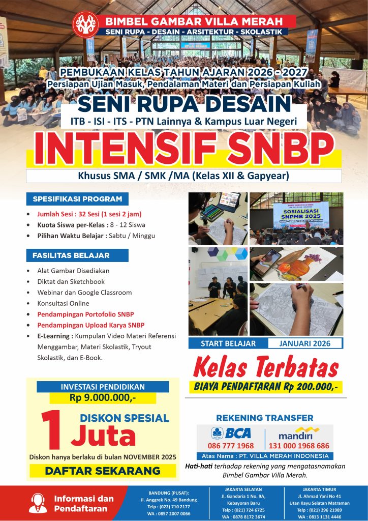 Program kelas Khusus XII SMA untuk mempersiapkan diri menghadapi SNBP Fakultas Seni Rupa Desain ITB atau Perguruan Tinggi lainnya.