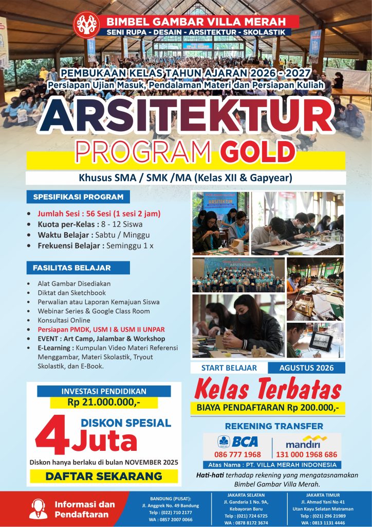 Program kelas Khusus XII SMA atau Alumni untuk mempersiapkan diri menghadapi seleksi masuk Arsitektur UNPAR atau Perguruan Tinggi lainnya baik didalam maupun luar negeri.